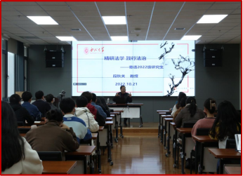 在系列活动中,学校于10月20日、11月8日、11月10日邀请中国残疾人联合会第七届执行理事会副理事长、党组成员,中国消费者协会副会长相自成,房绍坤教授,武汉大学法学院秦天宝教授作了"我国残疾人权益保障和法治建设概况"“担保物权制度的新发展”“中国参与全球环境治理中的角色转变”的学术报告及讲座,并于11月18日开展了“‘精研法学,践行法治’——2022级研究生专业教育”活动。10月31日至11月8日,欧冠官方网站开展了20场“精研法学,践行法治”法律专题学术汇报。