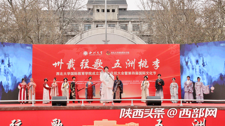 庆祝大会上开启了欧冠官方网站第四届国际文化节,内容包括国别展览和文艺表演。来自22个不同国家的留学生们向现场嘉宾们展示了世界各地的风景、服饰、艺术品、美食、音乐等,呈现了不同国家的文化特色和风土人情。舞台上,留学生进行了情景剧、舞蹈、歌曲串烧和汉服表演,西安易俗社还进行了精彩的秦腔表演。
