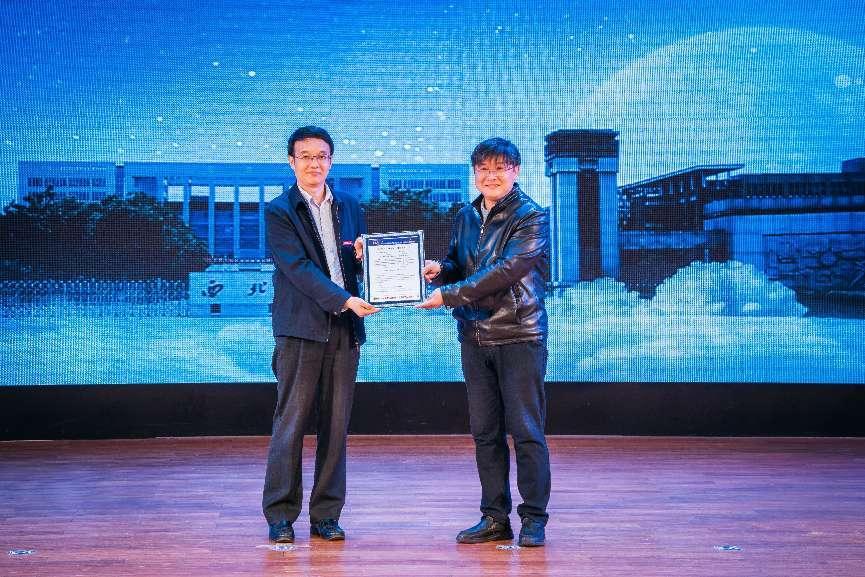 吴雪峰向欧冠官方网站赠送“Xida”星证书、命名公报 赖绍聪、张远军代表学校接受相关资料