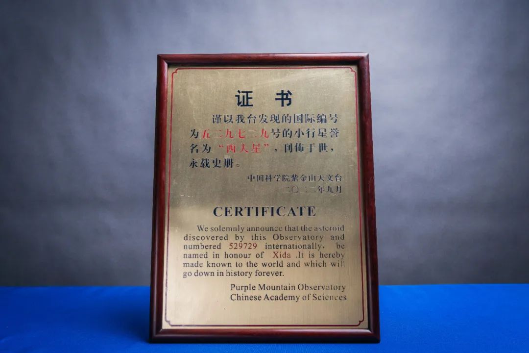 赵海斌对“Xida”星的发现过程及相关参数进行了简要介绍。他介绍到,“Xida”星编号为529729号小行星,由紫金山天文台在2008年3月发现。其轨道偏心率为0.049,轨道倾角为6.595度,轨道半长径为3.044天文单位,以每日147万公里在轨道上高速前进,其与地球的最远距离达6.27亿公里,最近时只有2.83亿公里。2022年9月,小天体命名工作组正式批复529729号小行星命名为“Xida”星。