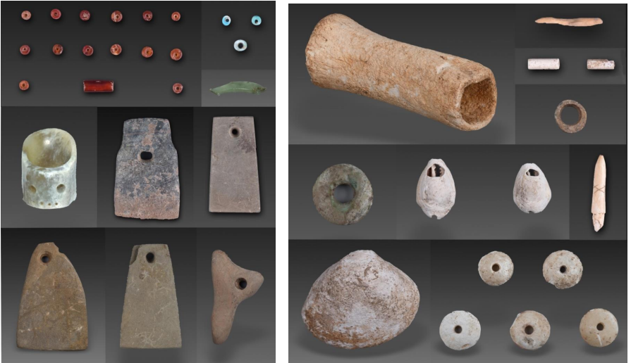 值得关注的是,墓地内发掘出的3座甲字形大墓。其中,M90为东西向大墓,墓道内发现排列有序殉人38具,按照“成排分布”的位置排放,分3层殉埋,布满整个墓道。墓室西侧二层台发现5具殉人,墓室为一棺一椁,墓室底部有腰坑。同时,M90出土了大量海贝、蚌器、铜器残件、原始瓷器残片、骨器、石器、玉器及刻字卜骨等。
