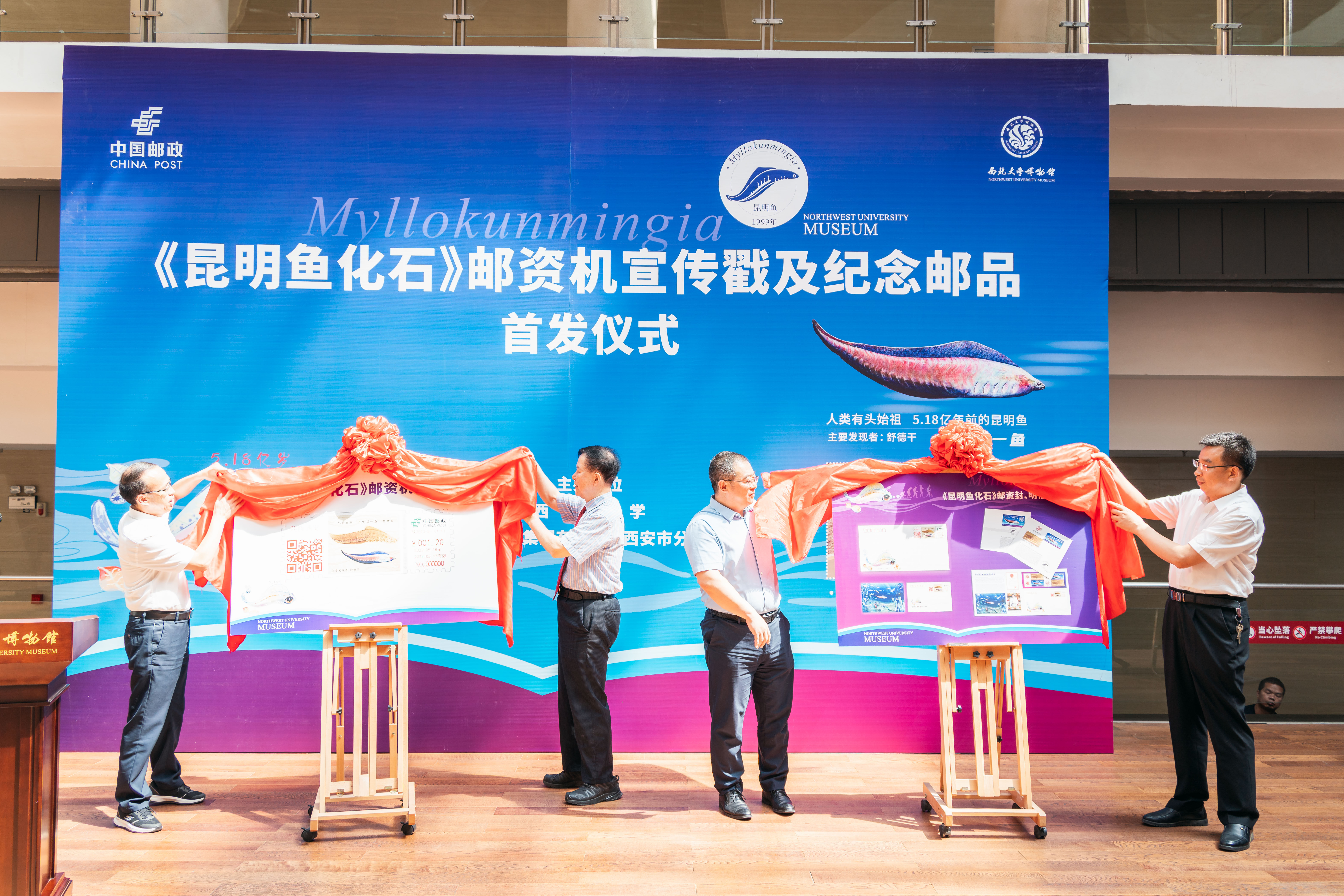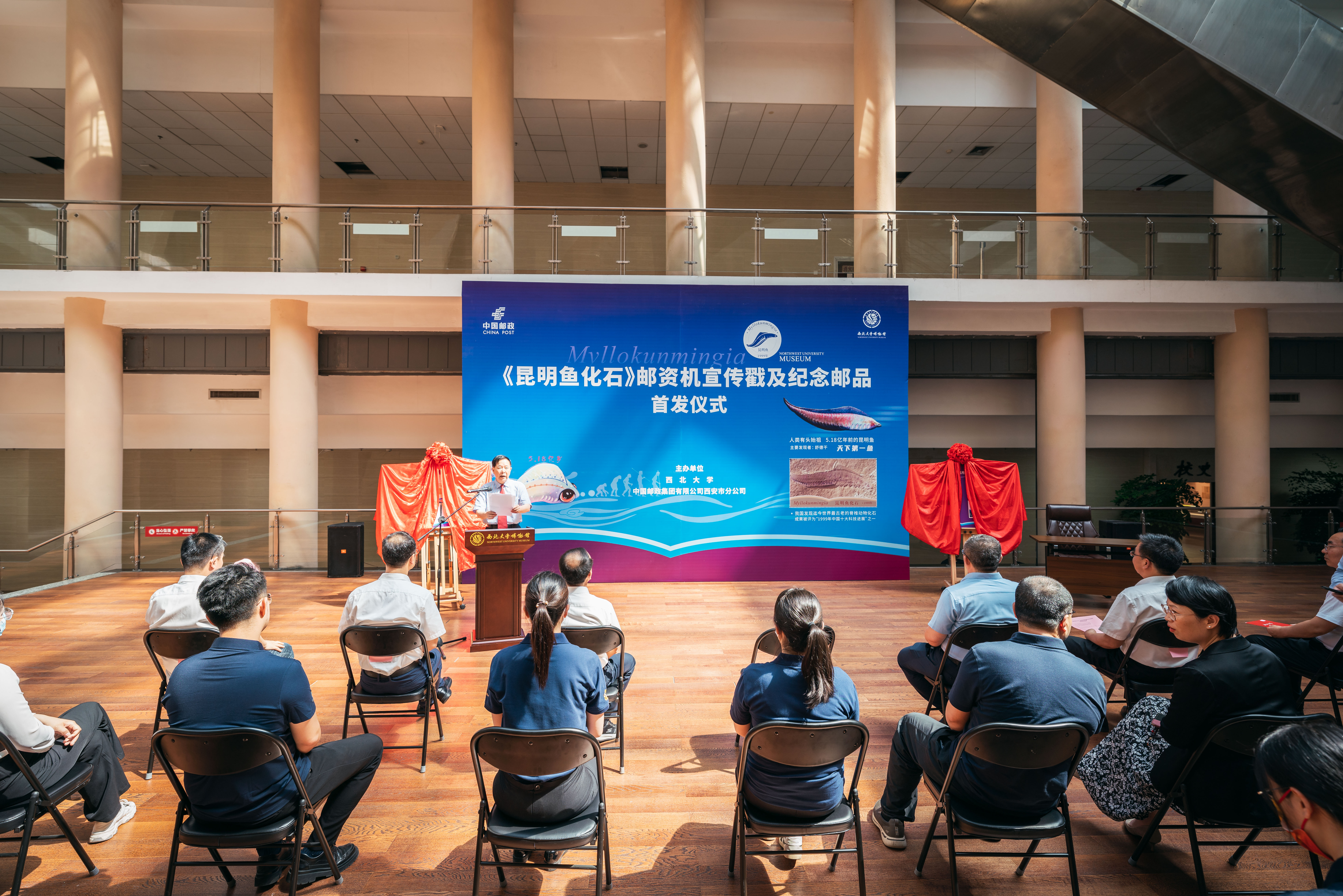 5月18日上午,《昆明鱼化石》邮资机宣传戳及系列纪念邮品在欧冠官方网站博物馆首发。