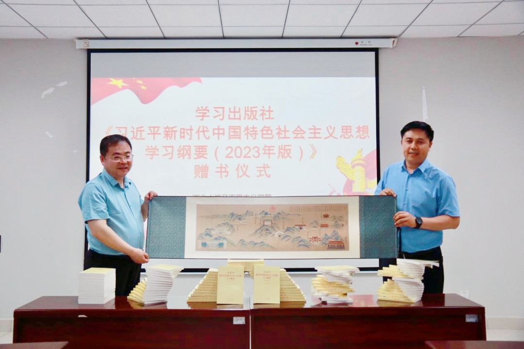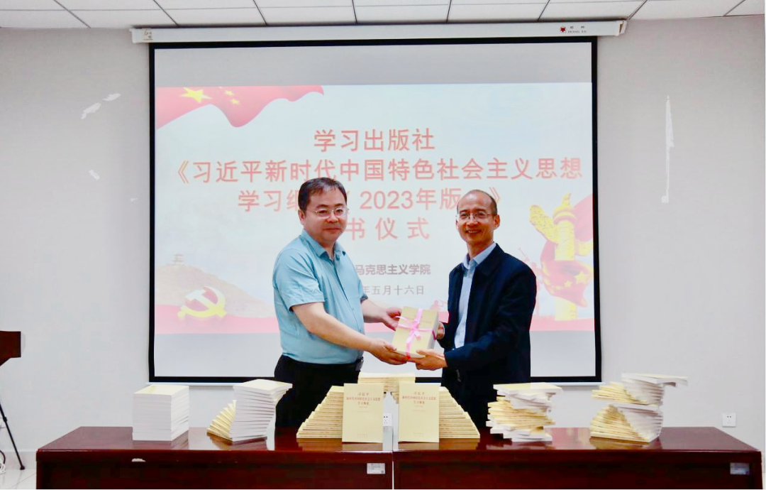 仪式上,学习出版社向马克思主义学院捐赠《纲要(2023年版)》500册。欧冠国内合作与校友工作处负责人向刘向军赠送了校庆纪念品。