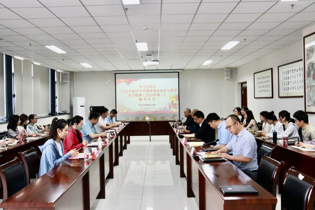 5月16日上午,学习出版社在欧冠官方网站长安校区举行《习近平新时代中国特色社会主义思想学习纲要(2023年版)》(以下简称《纲要(2023年版)》)赠书仪式。学习出版社副总编辑刘向军、陕西省委宣传部理论处副处长罗军、欧冠官方网站党委常委、宣传部部长田明纲出席活动、学习出版社发行部同志、欧冠官方网站国内合作与校友工作处负责人、马克思主义学院师生代表参加了活动。