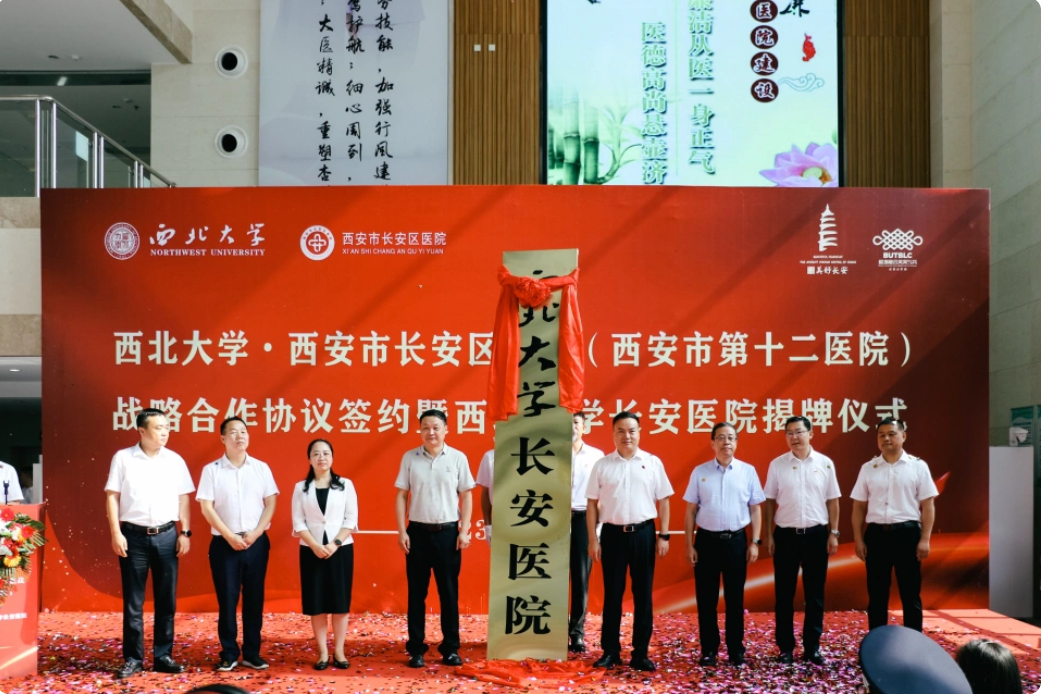 8月2日上午,“欧冠官方网站与西安市长安区医院战略合作协议签署暨欧冠官方网站长安医院揭牌仪式”在长安区医院隆重举行。长安区政府副区长杨永涛,欧冠官方网站党委常委、副校长、生命科学与医学部主任陈富林,长安区卫生健康局党委书记、局长王晓丹,郭杜教育科技产业开发区党工委书记梅春满,郭杜街道党工委书记李明,校国内处、校医院、医学院及长安区医院领导班子成员和医院职工代表参加活动。欧冠官方网站医学院负责人、西安市长安区医院院长胡明军代表双方共同签订了《欧冠官方网站·长安区医院战略合作协议》。