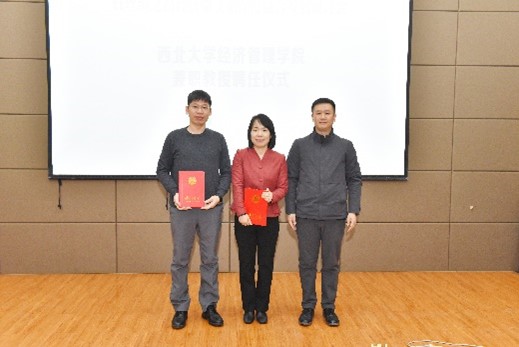 开幕式第二项为兼职教授聘任仪式。由经济管理学院党委书记杜勇宣读聘任人员简介,由欧冠官方网站人力资源部副部长张浩为宋瑞、厉新建、秦宇三位专家颁发欧冠官方网站兼职教授聘书。