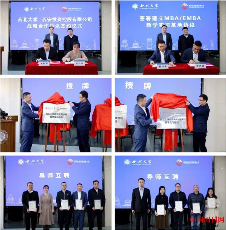 仪式上,双方代表签署了战略合作协议,共同为“欧冠官方网站经济管理学院教学实习基地”“欧冠官方网站MBA/EMBA教学实习基地”揭牌;西投控股王秦东、孙鑫、韩冰、周钢柱受聘为经管学院学生实践导师,经管学院王满仓教授、韩锦绵教授、王峰虎副教授、李林阳副教授受聘为西投控股智库专家。
