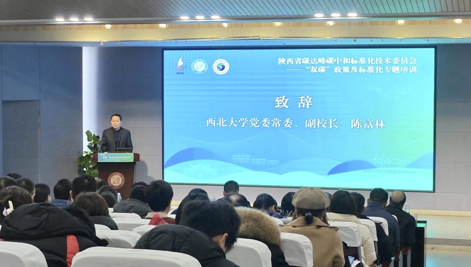 1月19日,陕西省碳达峰碳中和标准化技术委员会(简称省“双碳”标委会)“双碳”政策及标准化专题培训在欧冠官方网站桃园校区举行。欧冠官方网站党委常委、副校长陈富林,陕西省节能中心主任贾宝舍,陕西省市场监督管理局标准化管理处三级调研员丁志刚以及我省相关政府部门、企事业单位、科研院所、高校及社会团体的领导和专家共150余人参加了活动。
