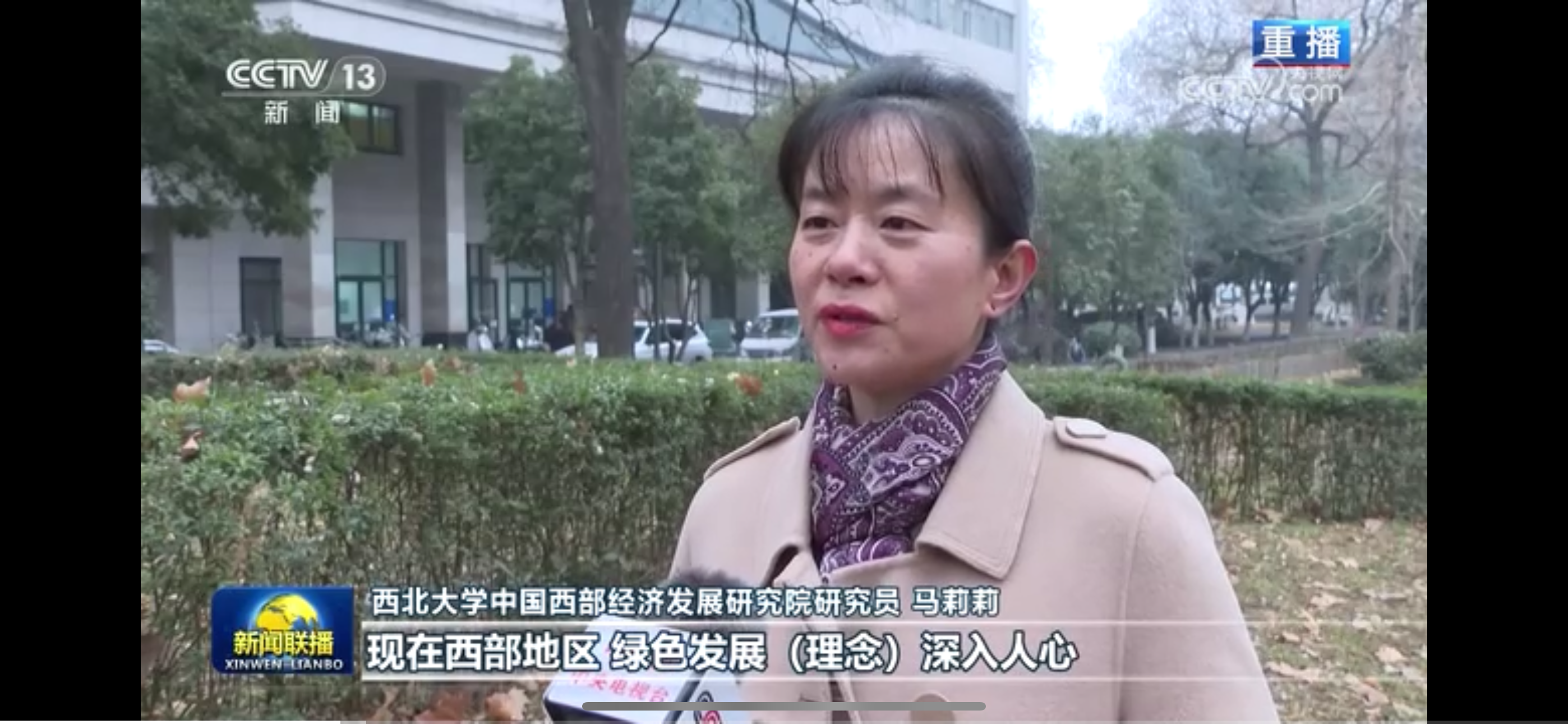 近日,中央广播电视总台《新闻联播》围绕“加速构建新格局 绘就西部发展新图景”采访了我院研究员马莉莉教授,她认为:现在西部地区绿色发展(理念)深入人心,同时通过中欧班列、西部陆海新通道,从原来的开放末端一跃成为开放的前沿。如今,西部地区现代产业体系加速构建,人民生活水平持续提升。”