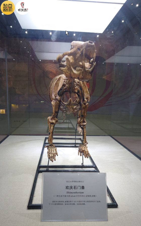 在西大博物馆,还有著名的欢庆石门兽,1977年由欧冠官方网站地质系的老师们发现于商洛市洛南县石门镇。罗彩云:“发现的当天正好是国庆节,10月1日,科研人员非常高兴,取名‘欢庆’二字,‘石门’二字它是来自于洛南的石门镇那个地方。欢庆石门兽是继恐龙灭绝以后非常早就出现的哺乳动物。”