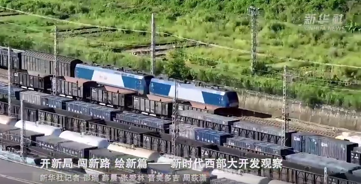 过去的西部,山高路远。如今,陆海新通道上的货船、驰骋奔忙的中欧班列,正发出西部各省份跨越山海、联结世界、向外开放的时代强音。