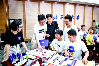 在西北工业大学国家大学科技园举办的科创训练营里,学生创新创业团队在研讨产品设计方案。郭友军摄/光明图片