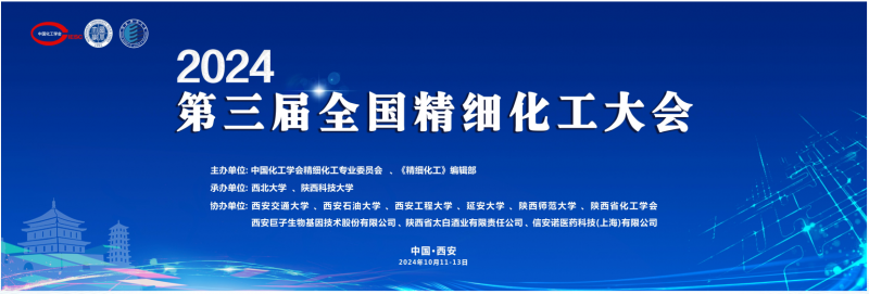 第三届全国精细化工大会 将于2024年10月11日至13日在西安举办,诚挚邀请(全球/全国)相关领域专家学者和企业精英/企业研发人员参会!