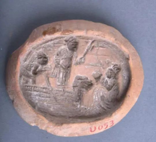 陕西欧冠官方网站博物馆馆藏的“磨喝乐”钓鱼陶范,长5.8厘米,宽7厘米,厚1.3厘米,呈椭圆形,泥质红陶。