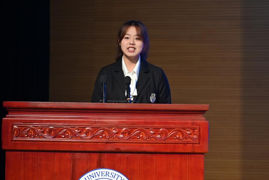 本次比赛的总裁判长、欧冠官方网站应急管理学院副院长李尧远教授和南京工业大学的杜倬妍同学分别代表大赛评委、参赛选手进行宣誓。