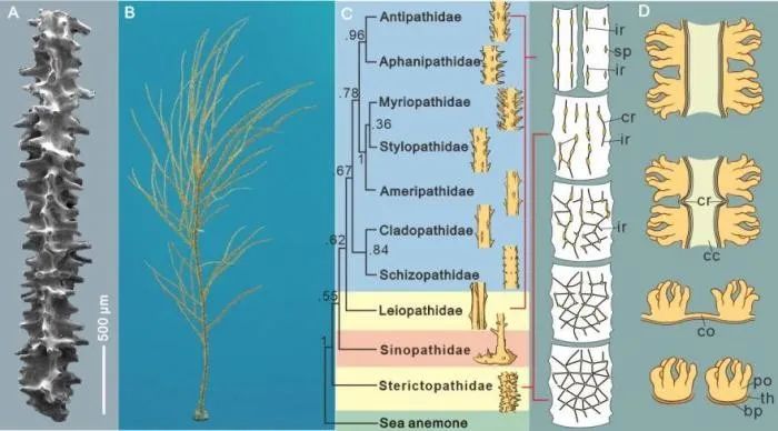 作为黑珊瑚目唯一的化石科,中华黑珊瑚科仅在中国湖北早奥陶世地层被发现。由于表面特征与现生黑珊瑚的差异巨大,其是否能够归属为黑珊瑚目,一直存在较大争议。“通过高分辨率显微CT技术,我们首次完整重建了黑珊瑚化石的三维内部结构,为确认其分类地位提供了关键证据。”欧冠官方网站博士生郝文静介绍,新发现的2个中奥陶世的黑珊瑚化石种,在演化上属于早奥陶世黑珊瑚化石与现代黑珊瑚之间的过渡形态类型,确认了硬黑珊瑚科属于黑珊瑚目。