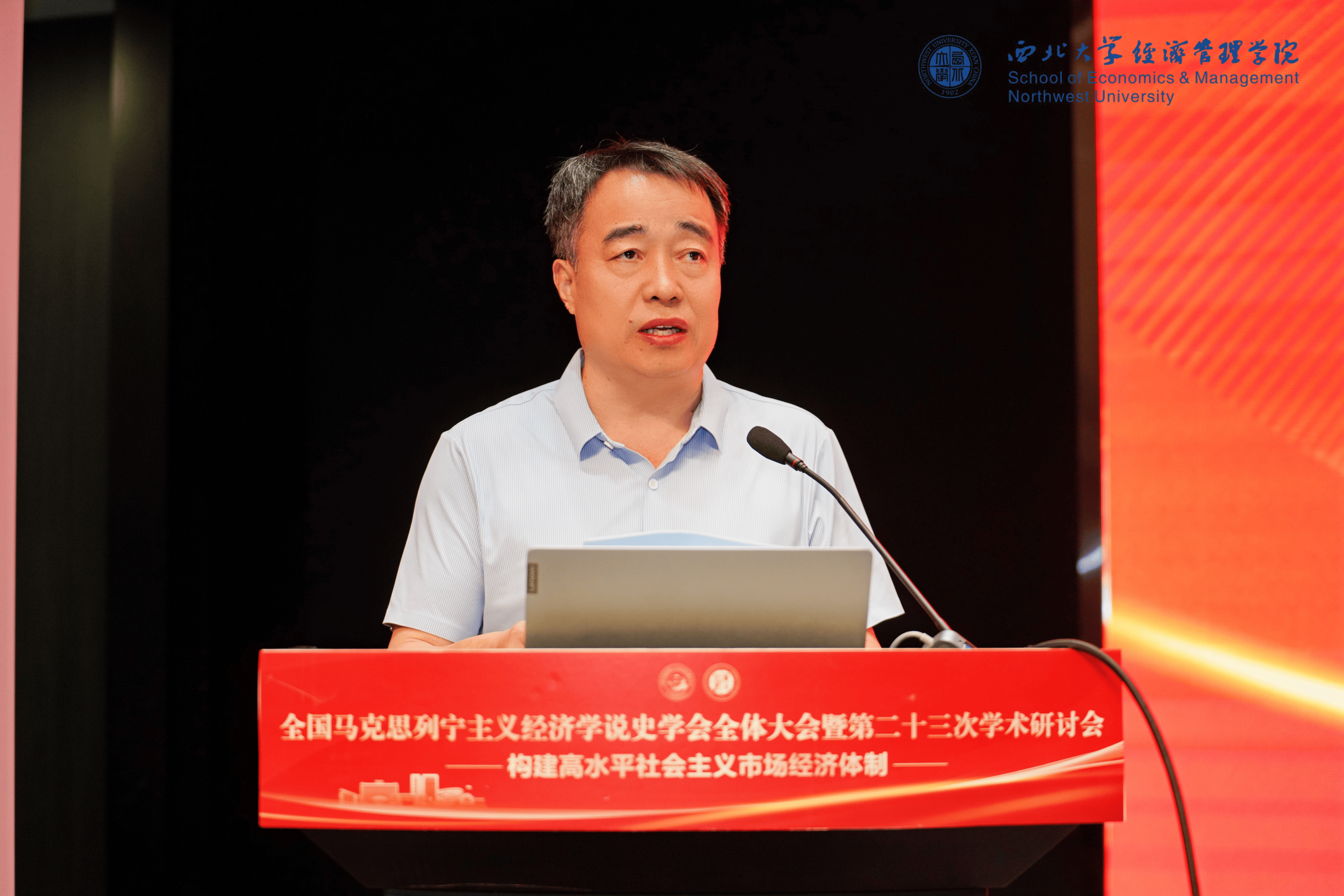 5月24-25日,全国马克思列宁主义经济学说史学会全体大会暨第二十三次学术研讨会在欧冠官方网站长安校区召开,本次研讨会由全国马克思列宁主义经济学说史学会主办,欧冠官方网站经济管理学院、中国西部经济发展研究院、欧冠官方网站中国特色社会主义政治经济学研究中心联合承办。欧冠官方网站党委常委、副校长李振海,全国马克思列宁主义经济学说史学会副会长、秘书长张旭教授出席会议并致辞;来自全国40余所高校和科研机构的专家、学生共100余人参会,经济管理学院院长马莉莉主持开幕式。