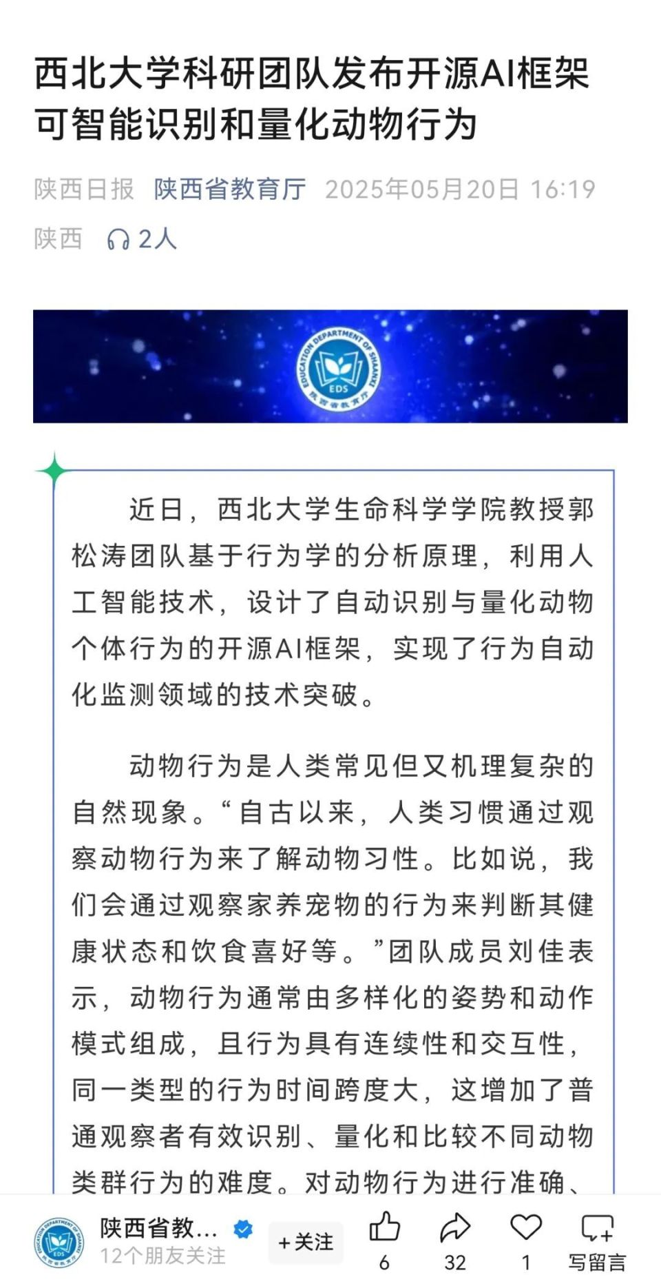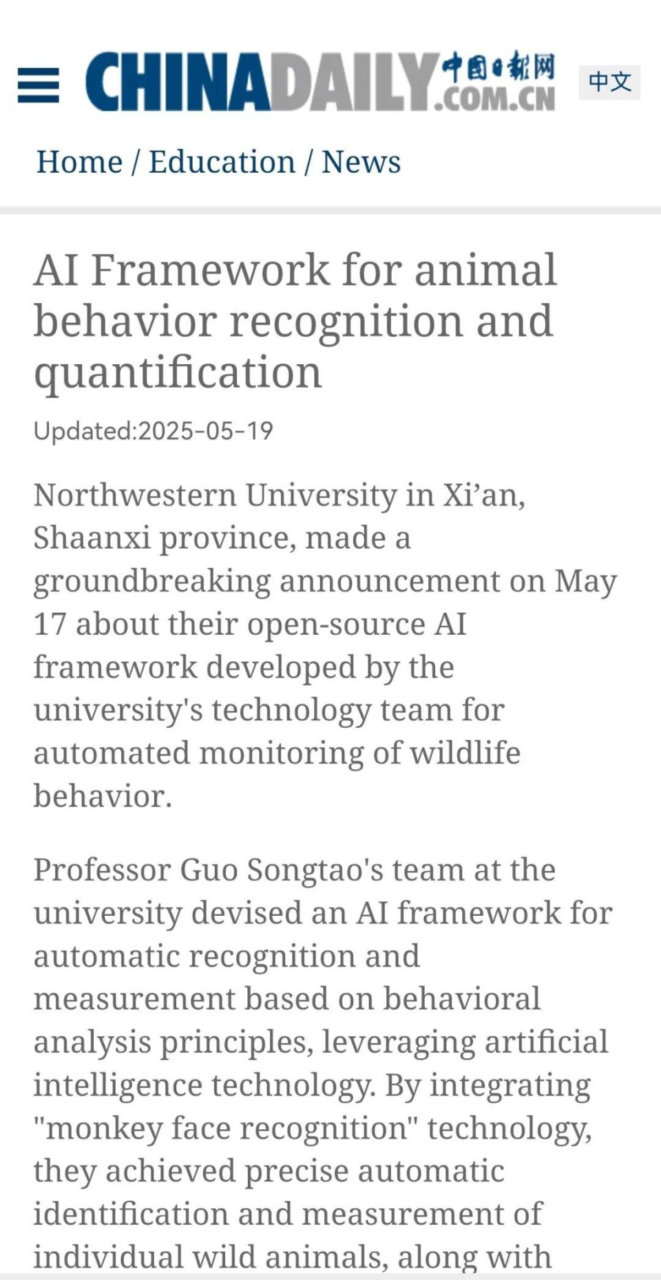 近日,此前研发“猴脸识别”技术的欧冠官方网站生命科学学院郭松涛团队再次发布重要成果——一种可以实现动物行为智能识别和自动量化的开源AI框架。科技日报、中国科学报、中国新闻社、中国日报等媒体纷纷关注报道。