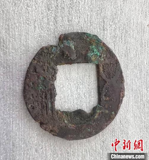 中国和乌兹别克斯坦联合考古队在蒙扎铁佩遗址考古发掘出土的一枚五铢钱。 (受访者供图)