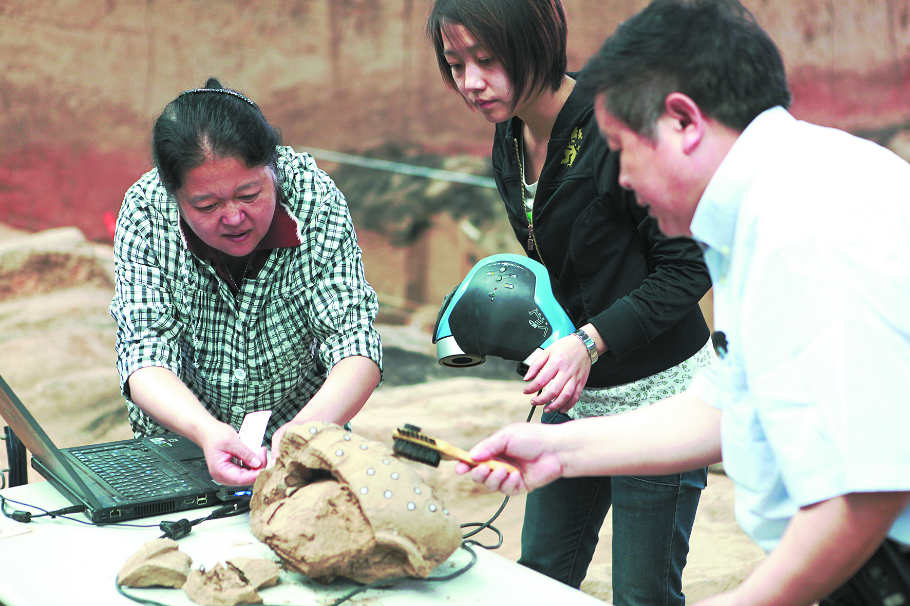 耿国华(左)在采集文物数据 欧冠官方网站供图