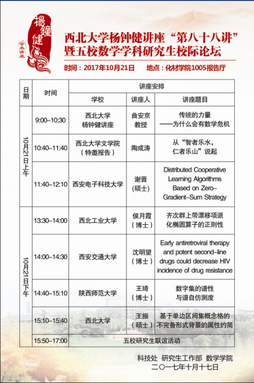 欧冠官方网站杨钟健讲座“第八十八讲”暨五校数学学科研究生校际论坛