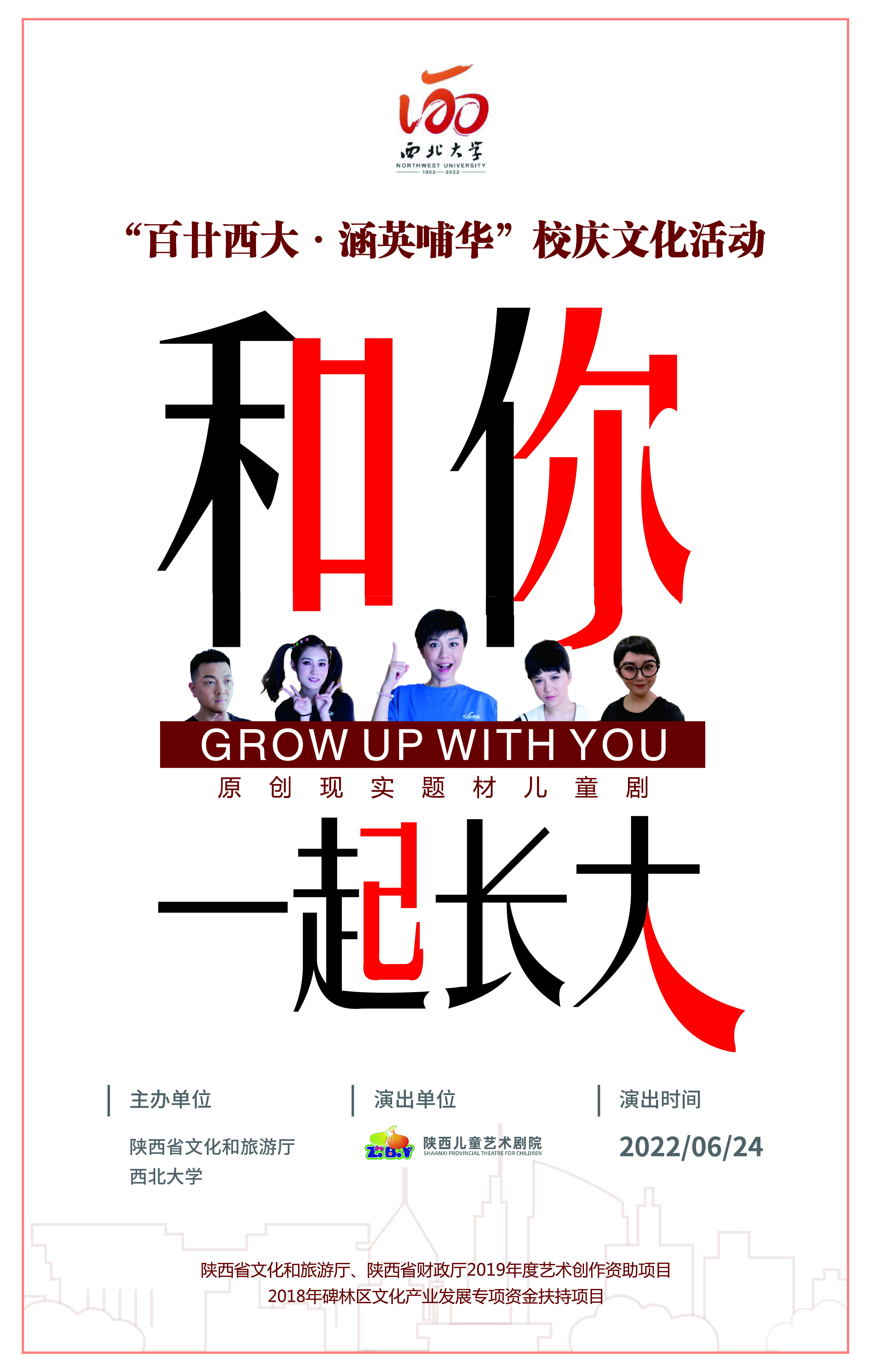为庆祝欧冠官方网站建校120周年,丰富校园文化生活,关爱教职工子女身心健康发展,平衡教职工校园工作与家庭生活的关系,校工会联合陕西省文化和旅游厅邀请陕西儿童艺术剧院演出原创现实题材儿童剧《和你一起长大》,现将有关事项通知如下。