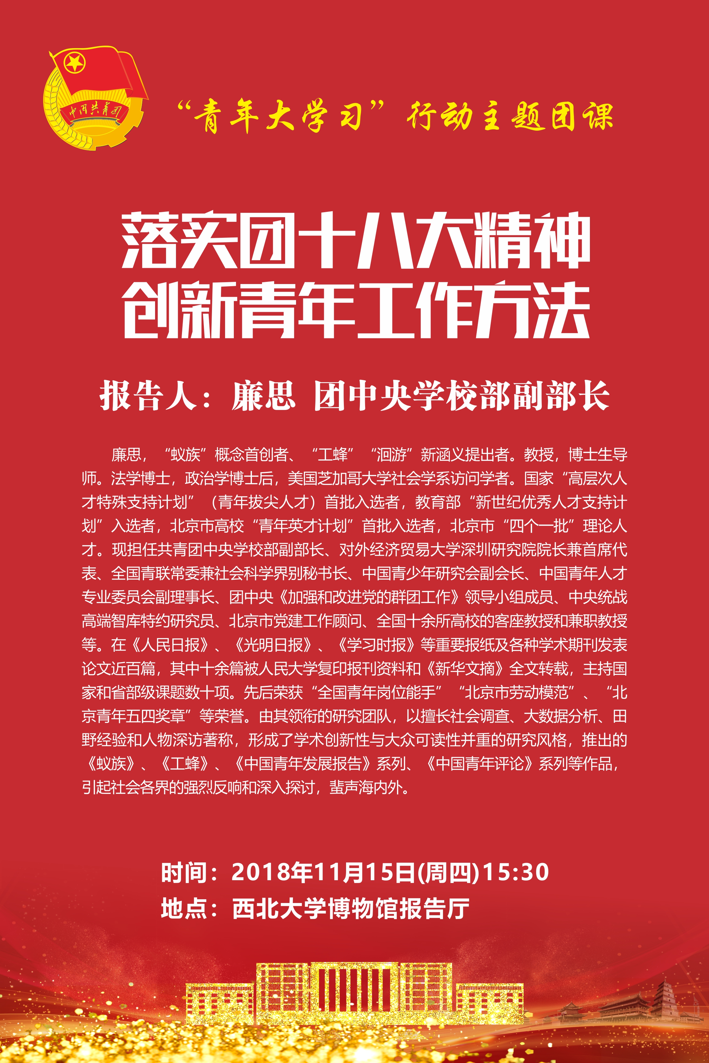 “青年大学习”行动主题团课:落实团十八大精神 创新青年工作方法