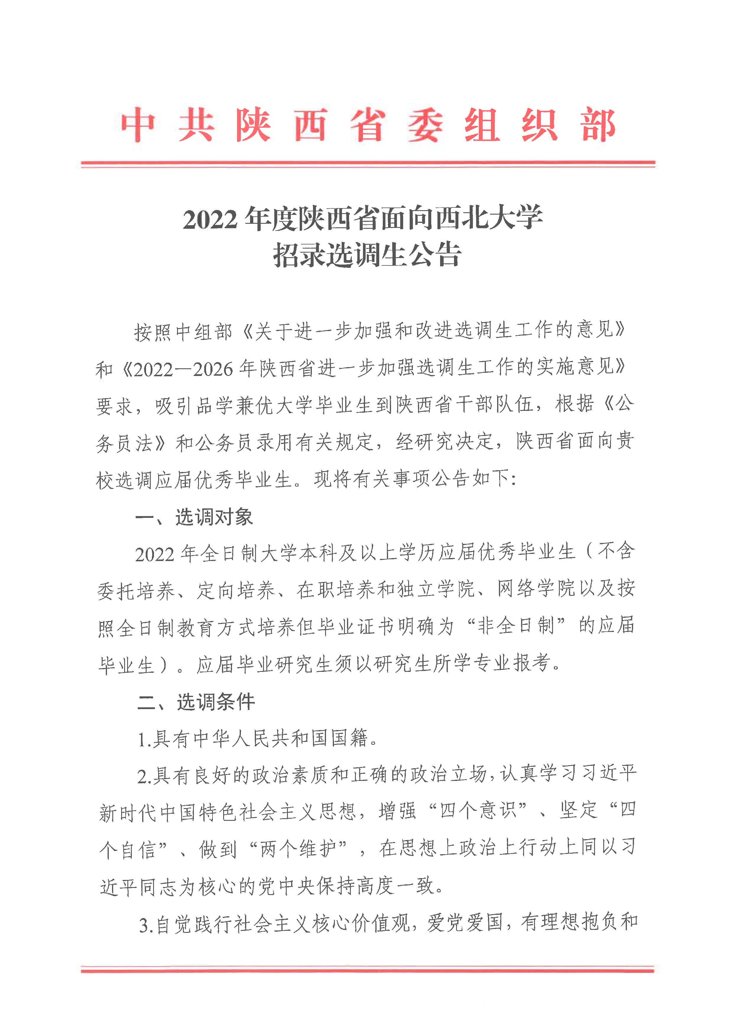 2022年度陕西省面向欧冠官方网站招录选调生公告