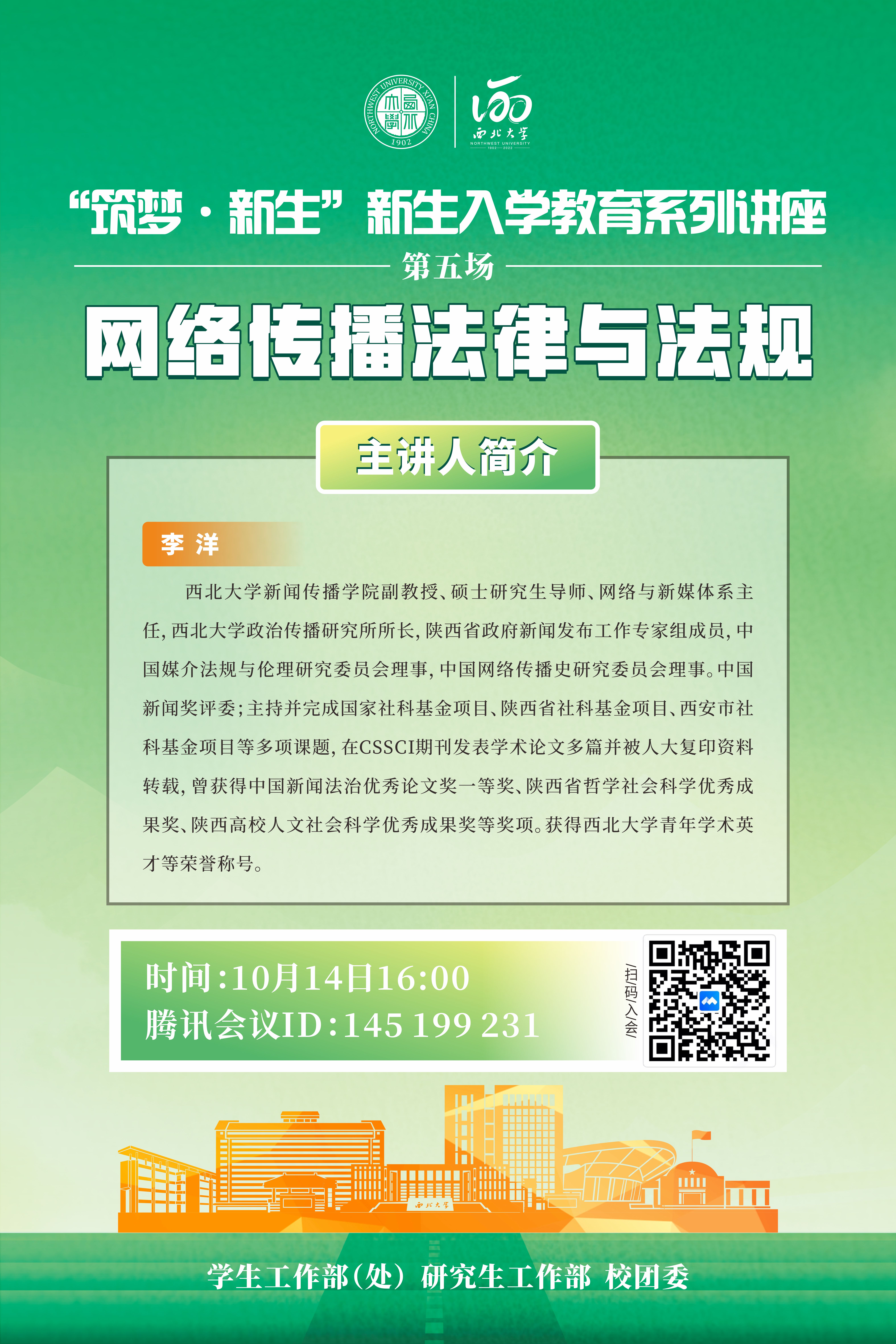 “筑梦·新生”新生入学教育系列讲座五:网络传播法律与法规