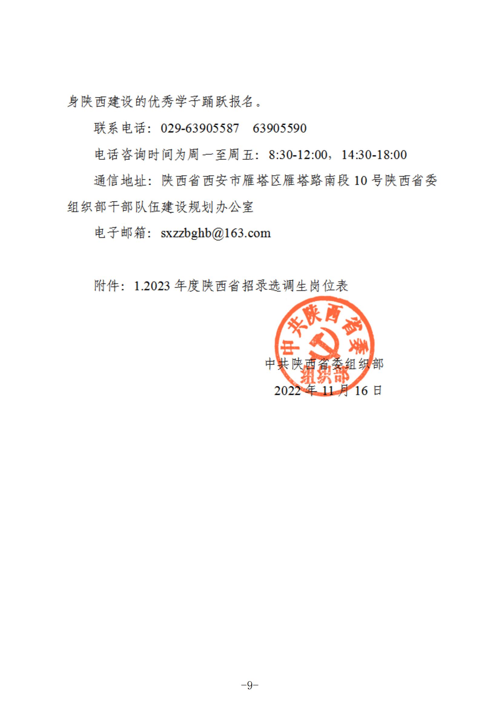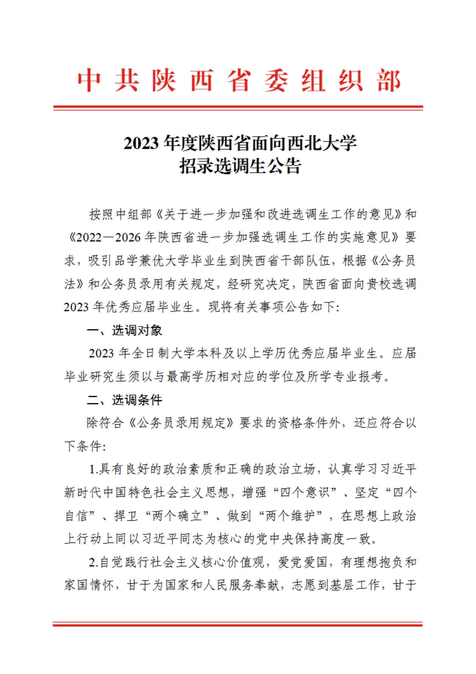 2023年度陕西省面向欧冠官方网站招录选调生公告