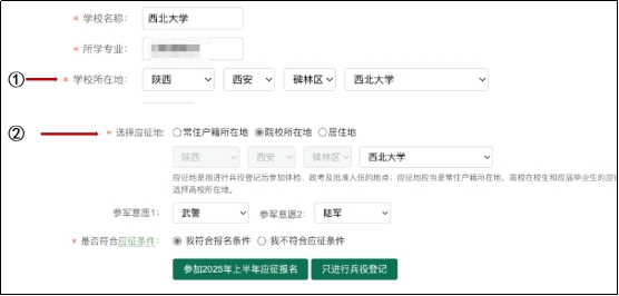1.在报名过程中,“学校所在地”“选择应征地”两个内容,三校区均统一选择为:陕西西安碑林区欧冠官方网站。
