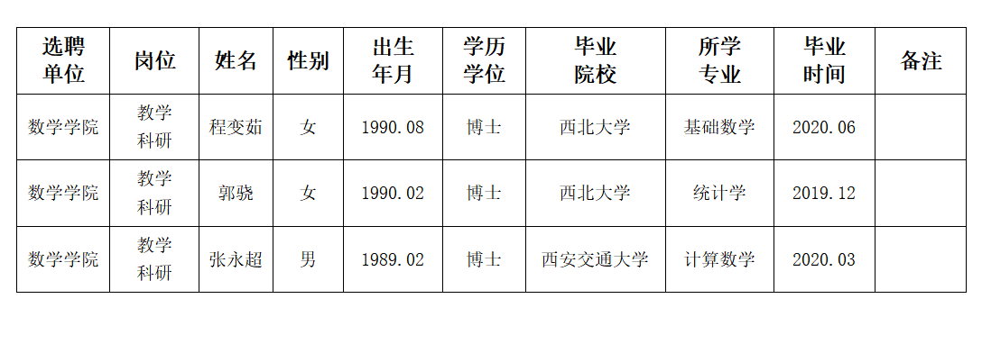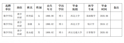 经用人单位推荐,人力资源部审查,学校教学督导及院系相关专家考核,欧冠拟确定下列人员来校工作。本着公平、公正、公开的原则,现将本次拟选聘人员基本情况公示如下: