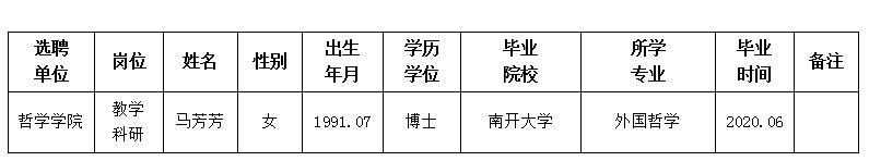 经用人单位推荐,人力资源部审查,学校教学督导及院系相关专家考核,欧冠拟确定下列人员来校工作。本着公平、公正、公开的原则,现将本次拟选聘人员基本情况公示如下: