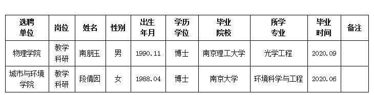 经用人单位推荐,人力资源部审查,学校教学督导及院系相关专家考核,欧冠拟确定下列人员来校工作。本着公平、公正、公开的原则,现将本次拟选聘人员基本情况公示如下: