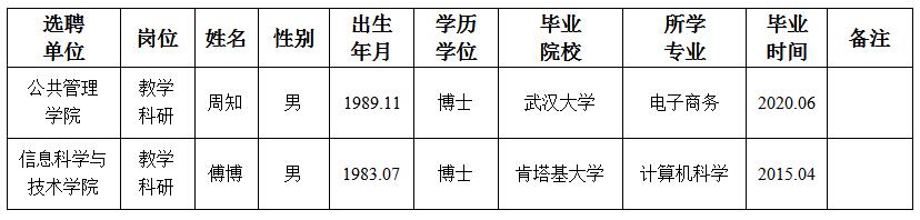 经用人单位及教学督导考核、学校研究,拟同意选聘下列人员来校工作,其聘任关系为A类人事代理。本着公平、公正、公开的原则,现将拟选聘人员基本情况公示如下: