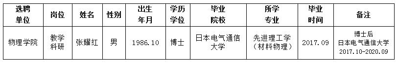 经用人单位推荐,人力资源部审查,学校教学督导及院系相关专家考核,欧冠拟确定下列人员来校工作。本着公平、公正、公开的原则,现将本次拟选聘人员基本情况公示如下: