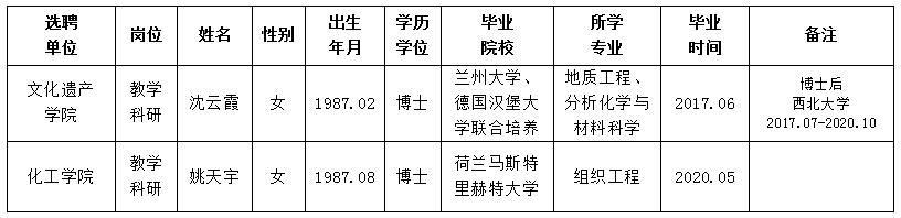 经用人单位推荐,人力资源部审查,学校教学督导及院系相关专家考核,欧冠拟确定下列人员来校工作。本着公平、公正、公开的原则,现将本次拟选聘人员基本情况公示如下: