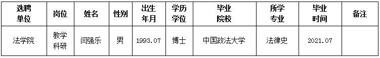 经用人单位推荐,人力资源部审查,学校教学督导及院系相关专家考核,欧冠拟确定下列人员来校工作。本着公平、公正、公开的原则,现将本次拟选聘人员基本情况公示如下: