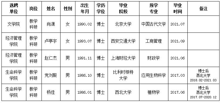 经用人单位推荐,人力资源部审查,学校教学督导及院系相关专家考核,欧冠拟确定下列人员来校工作。本着公平、公正、公开的原则,现将本次拟选聘人员基本情况公示如下: