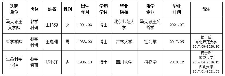 经用人单位推荐,人力资源部审查,学校教学督导及院系相关专家考核,欧冠拟确定下列人员来校工作。本着公平、公正、公开的原则,现将本次拟选聘人员基本情况公示如下: