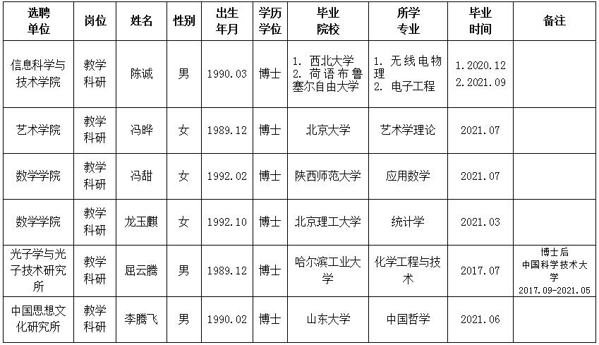 经用人单位推荐,人力资源部审查,学校教学督导及院系相关专家考核,欧冠拟确定下列人员来校工作。本着公平、公正、公开的原则,现将本次拟选聘人员基本情况公示如下: