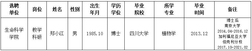 经用人单位推荐,人力资源部审查,学校教学督导及院系相关专家考核,欧冠拟确定下列人员来校工作。本着公平、公正、公开的原则,现将本次拟选聘人员基本情况公示如下: