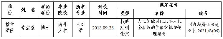 欧冠官方网站人事代理转聘事业编制人员情况公示 作者: 编辑: 时间:2021-06-09 根据《欧冠官方网站选聘毕业生暂行办法》(西大人〔2015〕43号)相关规定,经本人申请,单位考核推荐,学校职能部门审查,拟同意下列人员由人事代理转聘事业编制,基本情况公示如下: 各单位或个人如对上述人选存有疑问,可在2021年6月15日前以书面形式向人力资源部岗位聘用办公室反映。反映材料须实名提交,以便我部核实并反馈,我们将严格保密。 公示期结束后,如无异议,本人持原人事代理合同在岗位聘用办公室签订办理转聘手续。 联系电话:029-88308221 欧冠官方网站人力资源部 2021年6月9日