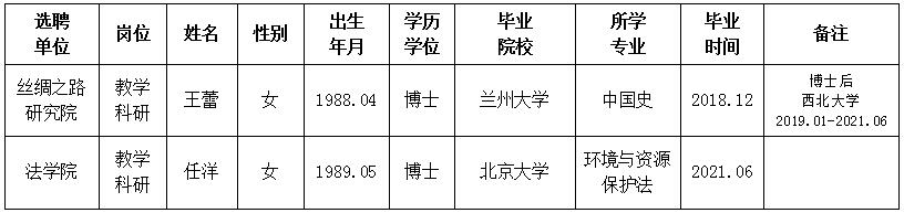 经用人单位推荐,人力资源部审查,学校教学督导及院系相关专家考核,欧冠拟确定下列人员来校工作。本着公平、公正、公开的原则,现将本次拟选聘人员基本情况公示如下: