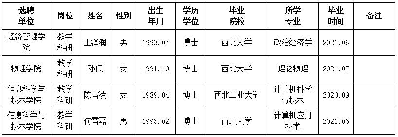 经用人单位推荐,人力资源部审查,学校教学督导及院系相关专家考核,欧冠拟确定下列人员来校工作。本着公平、公正、公开的原则,现将本次拟选聘人员基本情况公示如下: