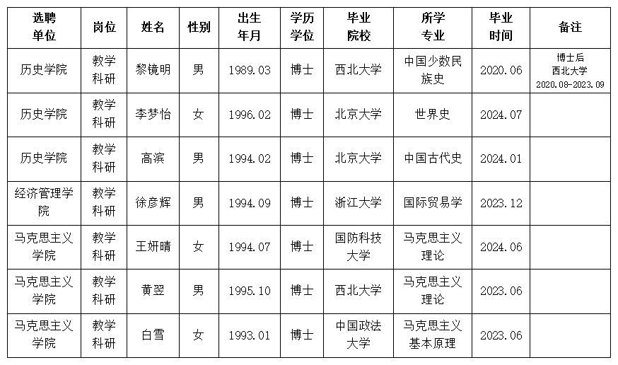 经用人单位推荐,人力资源部审查,学校教学督导及院系相关专家考核,欧冠拟确定下列人员来校工作。本着公平、公正、公开的原则,现将本次拟选聘人员基本情况公示如下: