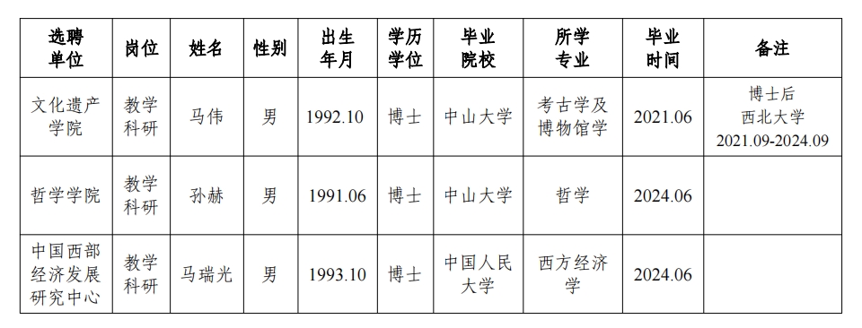 经用人单位推荐,人力资源部审查,学校教学督导及院系相关专家考核,学校专家评审会审议,欧冠拟确定下列人员来校工作,聘任方式为事业编正常选聘。本着公平、公正、公开的原则,现将本次拟选聘人员基本情况公示如下: