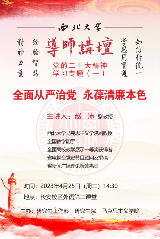 导师讲坛“党的二十大精神”学习专题(一):全面从严治党 永葆清廉本色