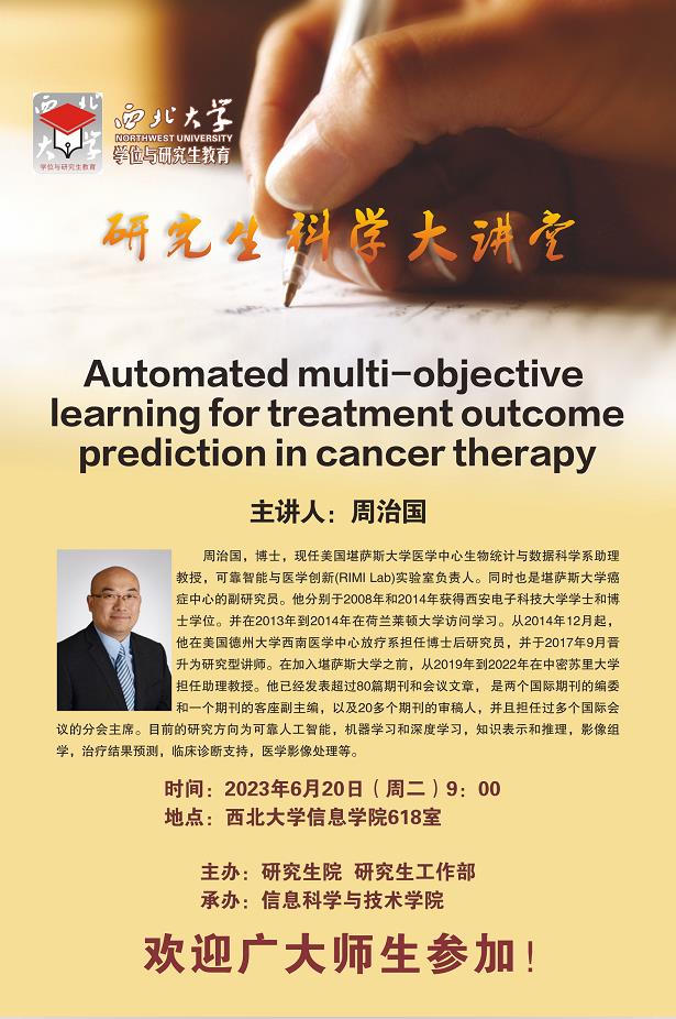 研究生科学大讲堂:Automated multi-objective learning for treatment outcome prediction in cancer therapy