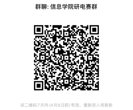 附:请参赛同学扫描以下二维码加入欧冠官方网站研究生电子设计竞赛群(信息学院研电赛群)。